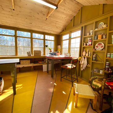 In 2021, I decided to commit my creative interests more to pottery. My pottery shed is nestled at the edge of our woods. With a wall of windows and a sunshine floor, it instantly lifts the spirts. Most evenings and weekends, you can find me there exploring different pottery techniques, singing along to music and soaking in my surroundings.